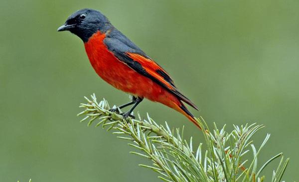 雄鳥頭和上背亮黑色,下背至尾上覆羽以及自胸起的整個(gè)下體赤紅色。主要以林業(yè)昆蟲為食,是重要益鳥。體色鮮艷,經(jīng)馴化后,可籠養(yǎng)觀賞。相似種短嘴山椒鳥外形和羽色和本種非常相似,野外不易鑒別。