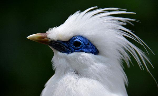 八哥系列鳥類中,顏值最高、最美麗的品種。周身潔白、外形俊朗、羽冠發(fā)達,眼睛四周和面部裸出,裸露部分為藍色。冠羽雖不像一些羽冠發(fā)達的鳥類復(fù)雜多變,卻十分有特點。求偶時雄鳥會豎起冠羽,不斷地上下擺動頭部。