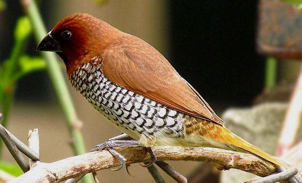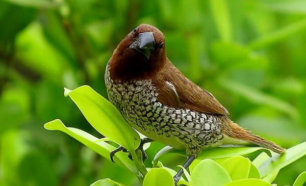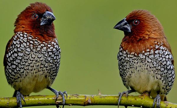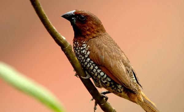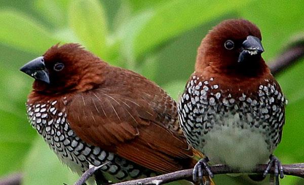 斑文鳥(niǎo):別名麟胸文鳥(niǎo)_小紡織鳥(niǎo)_魚(yú)鱗沉香_花斑銜珠鳥(niǎo),為雀形目、文鳥(niǎo)科、文鳥(niǎo)屬鳥(niǎo)類(lèi),原產(chǎn)于亞洲南部、北美洲南部,包括中國(guó)、尼泊爾、印度、孟加拉、不丹、錫金、緬甸、斯里蘭卡、泰國(guó)、中南半島、馬來(lái)西亞、印度尼西亞和菲律賓等地。主要棲息于海拔1500米以下的低山、丘陵、山腳和平原地帶的農(nóng)田、村落、林緣疏林及河谷地區(qū)。在中國(guó)云南西部地區(qū),也見(jiàn)于海拔2500米左右的田邊灌叢和附近的混交林帶。1758年命名,共11個(gè)亞種。
