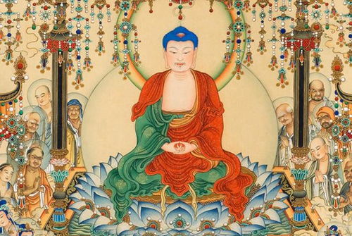 池zhuan中純金沙布地,樓閣皆是shu金銀飾,朵朵蓮花殊勝開,大如車輪放光彩。