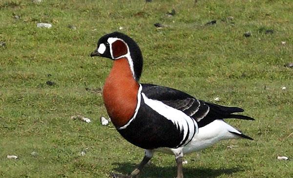 紅胸黑雁:別名,為雁形目、鴨科、黑雁屬鳥類,原產于歐洲、北美洲、亞洲(中部),我國僅偶爾發(fā)現(xiàn)越冬的迷鳥,僅見于湖南洞庭湖。野生于海灣、海港及河口地區(qū)。繁殖期在苔蘚和地衣覆蓋的凍原地帶。冬季湖泊、水庫周圍地區(qū)越冬。1769年命名。每年9月成群離開北極凍原帶繁殖地,遷往歐洲東南部的黑海、里海和咸海等地越冬。遷徙時常集成大群,白天幾乎不停地飛翔,僅在傍晚才降落到湖泊等水域休息和覓食,常常發(fā)出高叫聲,極為嘈雜。5月成群從越冬地遷往繁殖地,但春季遷徙的群體顯著較秋季遷徙的群體為小。