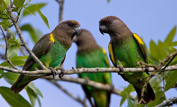 麥耶氏鸚鵡:別名邁耶氏鸚鵡,為鸚形目、鸚鵡科、非洲鸚鵡屬鳥類,原產(chǎn)于非洲南部,包括安哥拉、博茨瓦納、布隆迪、喀麥隆、乍得、剛果、埃塞俄比亞、肯尼亞、莫桑比克、納米比亞、盧旺達(dá)等地。主要棲息于森林、熱帶草原、刺叢地區(qū)、合歡屬植物分布的灌木叢,有時(shí)候也會(huì)前往農(nóng)耕區(qū)活動(dòng)。所棲息的林地通常離河流邊等水源區(qū)很近。1827年命名,共6個(gè)亞種。