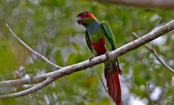 藍喉錐尾鸚鵡:別名藍喉鸚哥_赭斑鸚哥,為鸚形目、鸚鵡科、錐尾鸚哥屬鳥類,原產(chǎn)于南美洲巴西東部,從巴伊亞到里約熱內(nèi)盧。主要棲息于森林地區(qū)及邊緣地帶、毗連的開闊鄉(xiāng)村地區(qū),會時常前往可可種植園中高大可以提供庇蔭的樹木休憩活動,偶爾也會造訪當?shù)氐霓r(nóng)耕區(qū)。1820年命名。