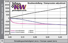 在日本自動(dòng)車(chē)規(guī)格(JASO C602)規(guī)定以作動(dòng)速度0.3m/s時(shí)的阻力大小來(lái)代表避震器的性能,我們稱(chēng)為阻尼系數(shù),單位為Kgf,所謂較硬的避震器就是作動(dòng)時(shí)可產(chǎn)生比較大的阻力。當(dāng)我們讓避震器以非常慢的速度壓縮或拉伸時(shí),它的阻力只有來(lái)自機(jī)構(gòu)內(nèi)部的摩擦力,阻尼油幾乎不產(chǎn)生阻力。
