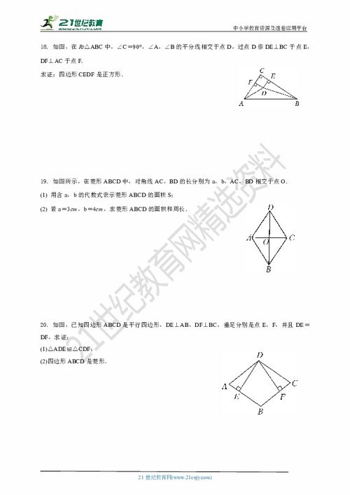 8:有一個(gè)角為直角的菱形是正方形。 9:既是菱形又是矩形的四邊形是正方形。
